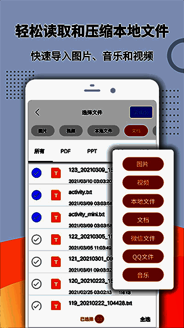 1、轻松读取本地各种文件并压缩