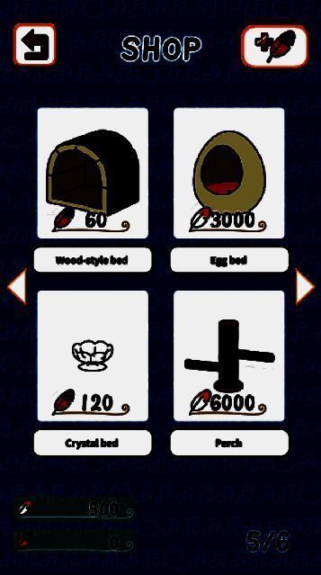 游戏提供清晰的新手教程,点击屏幕下方“tap to start”按钮即可开始游戏。随后为小鸟命名,并通过菜单选项进入商店购买坐垫、装饰品等道具,逐步完成布置后即可开启一场动听的音乐演奏。
