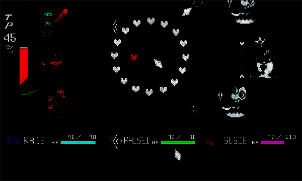 在战斗方面,《三角符文第一章》融合了回合制战斗与“子弹地狱”规避机制,考验玩家的战略思维与即时反应能力。敌人攻击轨迹难以预测,尤其是隐藏BOSS“疯狂小丑”Jevil,其随机性极强的招式组合对操作要求极高。玩家需熟练掌握闪避节奏,合理使用恢复类道具,并优先清理分身来降低战斗压力。