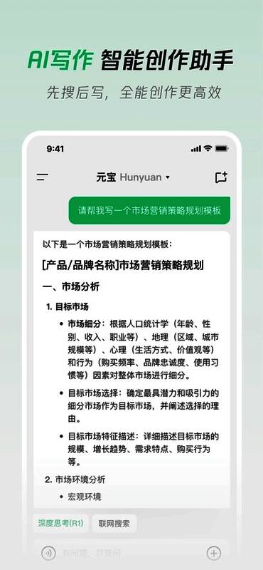 腾讯元宝 DeeSseek-R1联网满血版 V2.4.2126.93MB