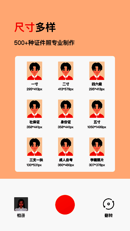 这款软件拥有智能拍照提示,可以让用户自由设置,随时让用户轻松拍摄证件照,还支持自拍模式,让用户的拍摄直到满意为止,还允许用户一键快速添加男女服饰,告别难看的证件照片。