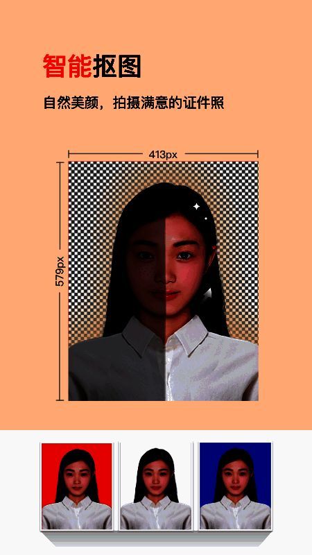 2、可以轻松根据不同的证件照要求,自动调整照片的大小、背景、边框等,确保照片符合国家标准;
