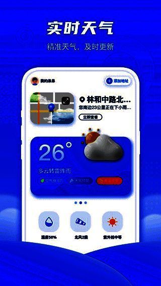 1.实时更新最新天气变化,每次浏览都可以根据输入的地址进行查看,确保天气准确