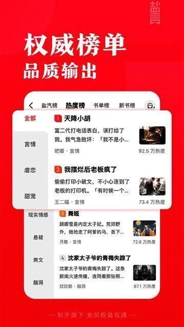 1、质量保证:依托知乎强大的品牌影响力和严格的审核机制,所有网络故事都保证具有较高的文学价值。