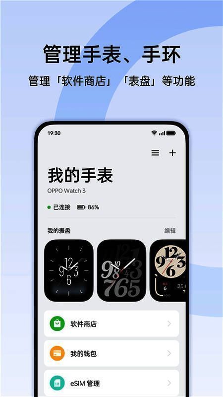 3.管理手表手镯:管理软件商店、表盘和其他功能。