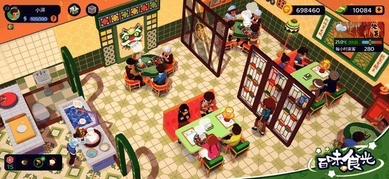 点单:当顾客落座后,他们头顶会冒出点单泡泡,点击即可进入点单环节。