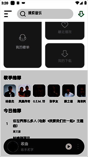 这款软件中各种音乐资源超级丰富,不管什么类型的音乐都可以在这里找到,所有的音乐都是免费提供,自由收藏喜欢的音乐歌曲,给用户带来优秀的听歌播放服务和体验,自由免费播放听歌。