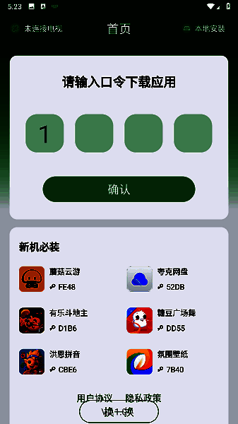 打开野草助手app,输入口令,点击确定,具体口令参考下文;