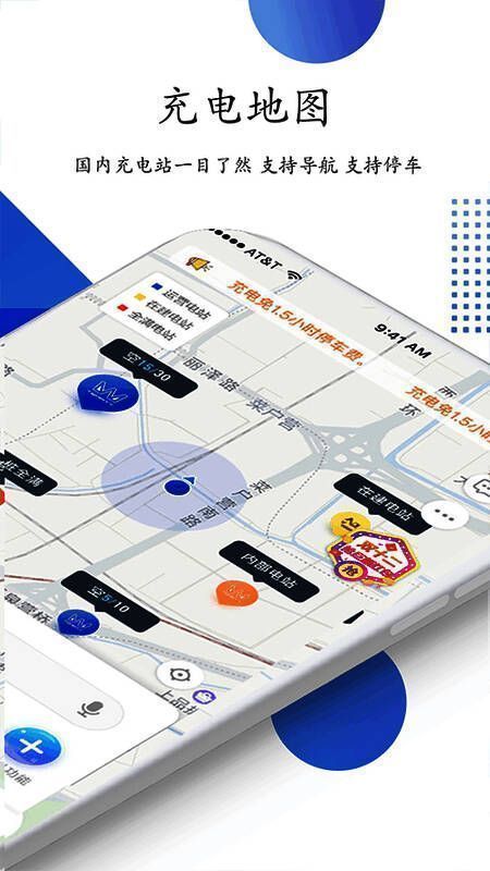 1.附近充电站地图:主页显示车主附近的充电站分布,一键导航,节省时间和精力。