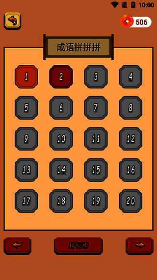 2、每个关卡都有不同的拼字难度,玩家需要根据字谜线索来拼出成语;