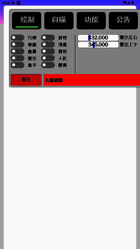 调整绘制参数:找到绘制设置入口后,进入该界面。在这里可以对绘制的各项参数进行调整,比如方框绘制的颜色、大小、透明度等,以便在游戏中更清晰地显示;骨骼绘制的显示方式、线条粗细等,根据个人喜好和实际游戏需求进行设置。
