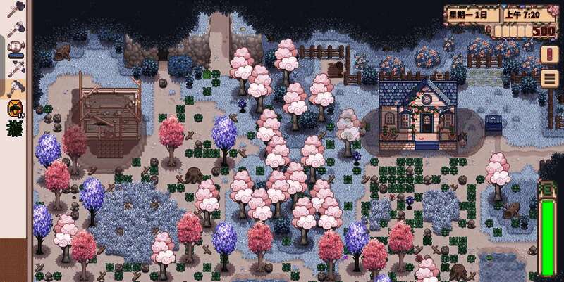 7、走出房间后可以在附近开始开荒,左侧是工具栏。