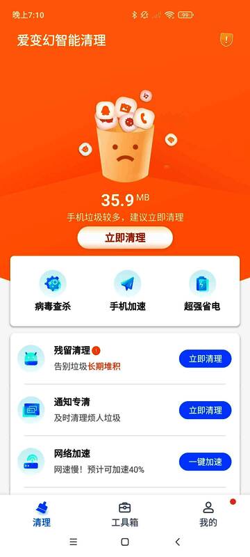 爱变幻智能清理是一款热门的免费手机清理软件,拥有非常智能的手机清理模式和功能可以免费使用,方便用户自由清理手机缓存,系统垃圾等,随时随地自由释放更多的手机内存空间,给用户带来全面的手机清理服务和体验,还具有智能加速模式,随时在线优化手机,灵活帮助用户解决手机卡顿等问题,能完全满足用户的使用需求,还可以自由查杀手机病毒,轻松保护手机安全和隐私,可以让用户流畅使用手机,有需求的用户欢迎下载使用。