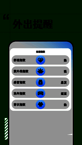 3、生活指数:平台提供生活指数,包括空气质量、紫外线指数、穿衣建议等。可以根据这些指标为日常生活和旅行做准备。