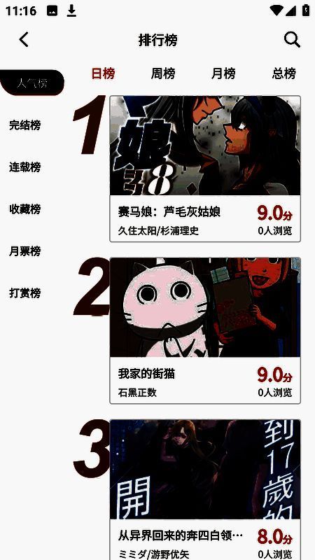 2、分类浏览:该软件提供了多种漫画分类和排名功能,方便用户根据自己的喜好浏览和筛选漫画;