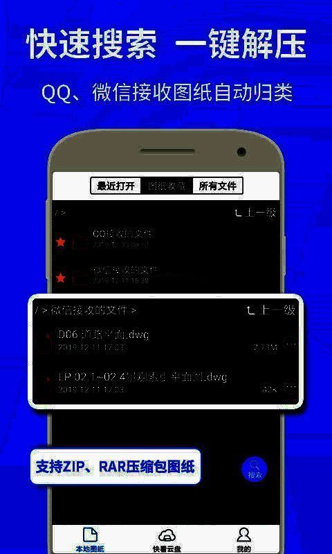 cad快速看图是一款非常小非常好用的看图软件,软件采用独特的快速加载技术,启动效率快,直接通过手机可随时随地查看图纸并进行编辑标记等。同时用户可以通过文件拷贝及邮件及时发送至用户或是施工者,即使没网络的情况下也可以进行现场更改。软件不仅具有全面的编辑工具,可以实现标注、照相、录音、全屏化等功能,同时软件还内置云盘功能,可以轻松共享cad图纸。致力于为用户带来优质的使用体验!