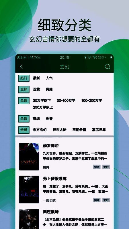 1、海量小说:本软件包含大量不同题材、不同类型的小说,可以很好地满足不同用户的阅读体验;