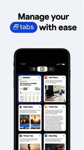 2、简单直观的体验——可以打开任意数量的标签页,并通过以下方式在标签页之间快速切换:在手机上,可以像打牌一样一个一个浏览;在平板电脑上,你可以滑动边缘进行切换。