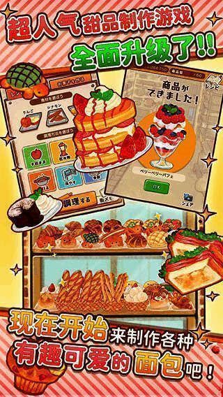 在洋果子店游戏中,玩家可以选择其他方法尝试游戏内容。画面优秀,音响完美。每次玩的时候心情都很好。喜欢的玩家可以下载甜点玫瑰面包店最新的手机版本。
