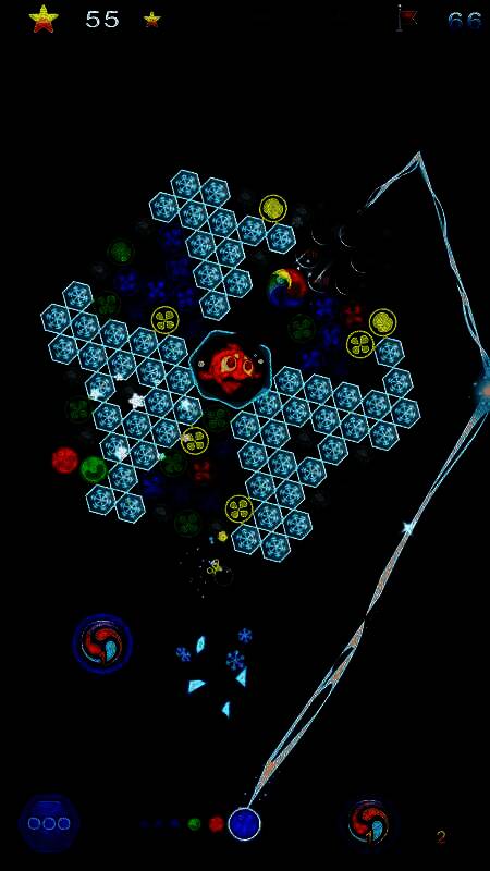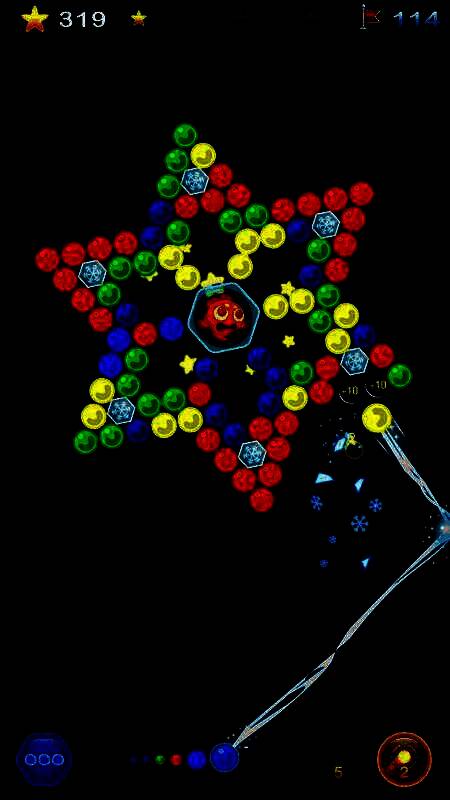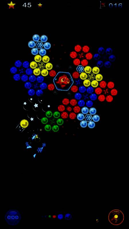 2、消除机制:通过发射相同颜色的泡泡,至少三个相同颜色的泡泡连接在一起即可消除,快速清除屏幕上的泡泡;