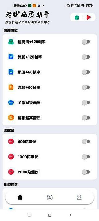 老街画质助手超广角是一款优秀的画质修改软件,拥有丰富的画质选项和功能,随时帮助用户轻松修改游戏画质,轻松提升用户的游戏体验,还家具有自动化的帧率解锁,可以及时帮助用户解锁更高的游戏画面,参数,轻松感受精彩的游戏过程,能完全满足用户的使用需求,而且该软件也支持多种类型的游戏画质参数的调整和修改,给用户带来全面的服务和体验,还具有免ROOT权限,随时帮助用户预设各种游戏画质,有兴趣的用户欢迎下载。