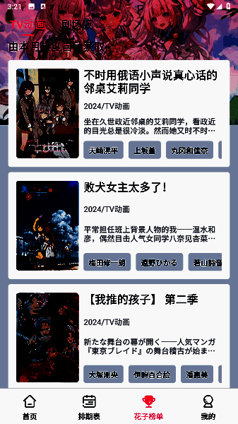 个性化推荐:根据用户的观看历史和喜好,花子动漫会推荐相关的动画作品,用户可以在个性化推荐页面找到感兴趣的番剧。