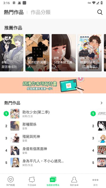 2、在首页可以看到热门漫画。