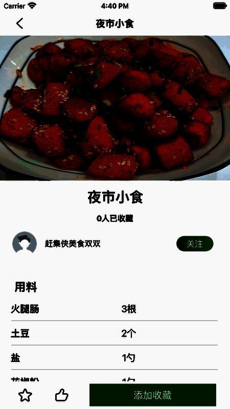 2、个性化收藏功能:用户可以随时收集自己喜欢的食谱,方便以后的回顾和制作;