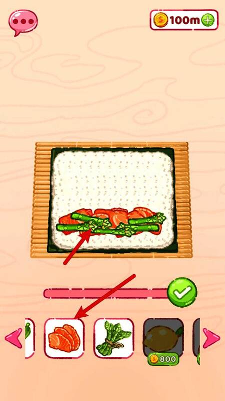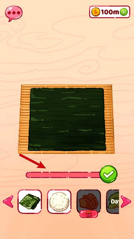 1.选择不同类型的食材,如糯米、海藻、鱼、蔬菜等,并将其拖到卷帘上。