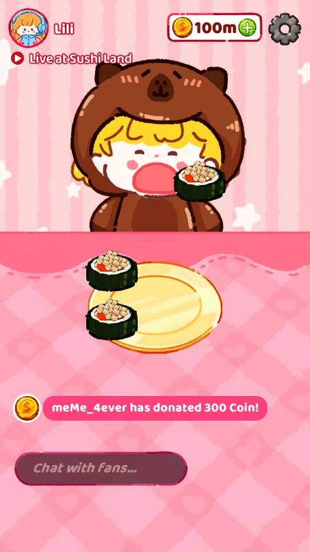 4.观众的虚拟礼物将成为你的收入,可以用来增强厨房设备,解锁更多的寿司食材。