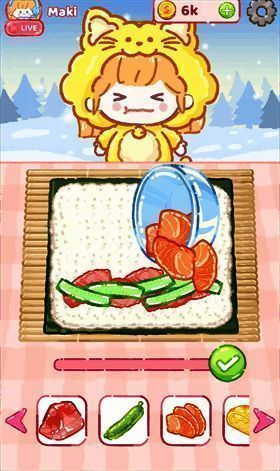3.可爱的卡通风格美食烹饪模拟,创造创意寿司组合,完成有趣的挑战,并与观众实时互动。