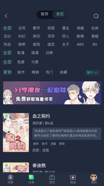 2.有了大量的作品和广泛的收藏,你可以很容易地找到你想读的漫画。该软件提供各种类型的漫画,包括中国漫画、日本漫画、美国漫画、连载漫画、成品漫画等。用户可以根据自己的兴趣选择阅读。