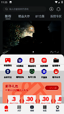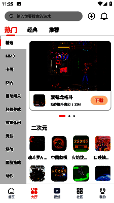 1、进入首页,玩家可以选择通过不同的方式来寻找游戏体验,如分类、新游