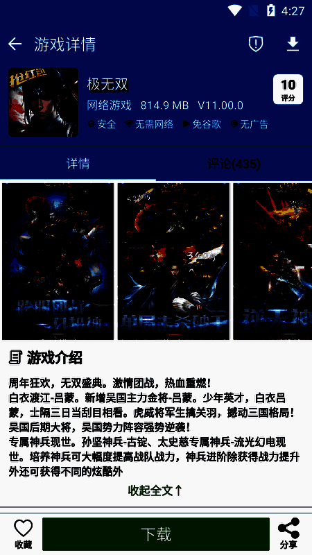 2. 全球首创实现一键下载安装大型游戏,自动适应您的设备,省去了寻找数据包的麻烦。