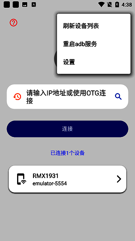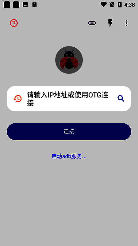 4、打开甲壳虫ADB助手应用,在首页的输入框中,输入车机上显示的无线调试地址(即上一步中记下的IP地址),然后点击“连接”。