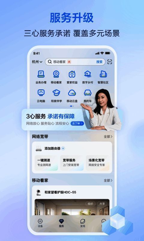 通过连接家中的智能门锁、摄像头、灯光、空调等设备,用户可在App中统一管理,设置定时提醒、异常报警等功能。一旦检测到异常情况,系统会立即推送警报信息,保障家庭安全。结合中国移动稳定的网络支持,设备响应迅速,运行稳定可靠。