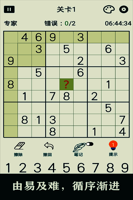 游戏基于标准数独规则——在81格的宫格中填入1-9不重复的数字,确保每行、每列及每个3×3宫格内均含全部数字。在此基础上,《开心数独 免费版》引入多样解谜机制,支持标记候选数、撤销操作与实时错误提示,降低新手门槛。同时设有初级、中级、大师三重难度体系,配合自动存档与暂停功能,让玩家可随时随地开启或继续一场智力较量。