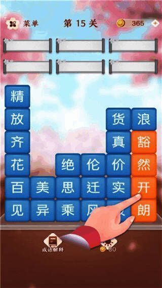 游戏独创“成语消除+角色成长”双线机制,玩家每成功组合一个成语即可触发消除动画,清空关卡内所有字块即视为通关。玩法操作简单直观——用手指滑动或点击相连汉字,组成正确成语即可消除,系统实时判断合法性并给予反馈。越往后关卡设计越复杂,需策略性规划字块顺序,极大提升沉浸感与挑战性。