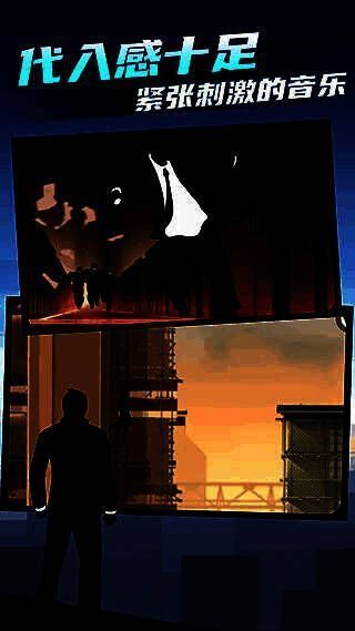 游戏采用高强度节奏电子乐作为背景音轨,随追逐紧张度动态变化,营造步步紧逼的压迫氛围。视觉上延续标志性黑色剪影风格,角色轮廓与环境形成强烈对比,配合粒子光效与动态阴影,即便在2D平面也展现出堪比3D大作的空间层次感与动作表现力。
