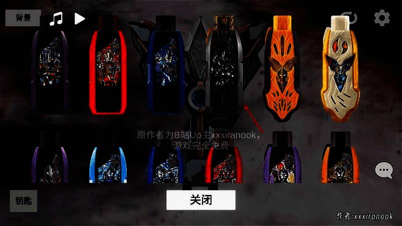 模拟器支持多形态切换系统,包含光辉型、强力型及人气极高的黑暗特利迦形态。以黑暗特利迦为例,用户可通过点击右上角将胜利神光棒切换为“黑色火花棱镜”,再于左下角选择专属的“胜利超越之匙”并激活,随后插入光棒、扣动扳机,即可触发专属变身动画与低沉震撼的黑暗音效。变身成功后,背景更伴有恐怖的黑色闪电特效,视觉冲击力拉满。