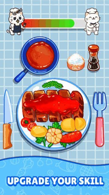支持无网络环境下全程游玩,无需登录即可进入关卡,适合通勤、休息等碎片化时间。适配主流中低端机型,经测试在安卓5.0以上系统均可流畅运行,内存占用仅85MB,安装包小巧高效。此外,开发团队承诺每月更新新增菜谱与挑战关卡,持续丰富游戏内容。