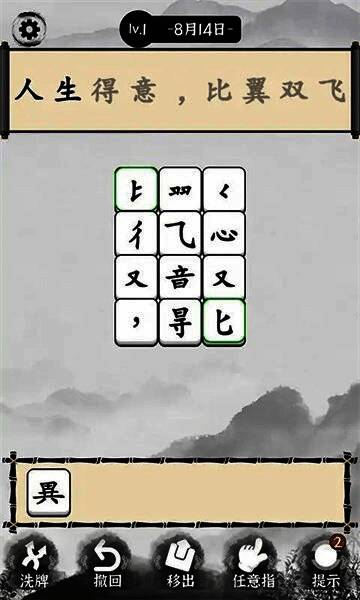 游戏独创“一笔成字”机制,玩家需在原有汉字基础上添加一笔,使其变为全新汉字,例如“日”加一笔变“目”或“白”。该玩法不仅考验对汉字结构的理解,更激发玩家的联想能力与观察力。此外,关卡还融入成语接龙、同音字辨析、形近字区分等语文知识点,兼具趣味性与学习价值。
