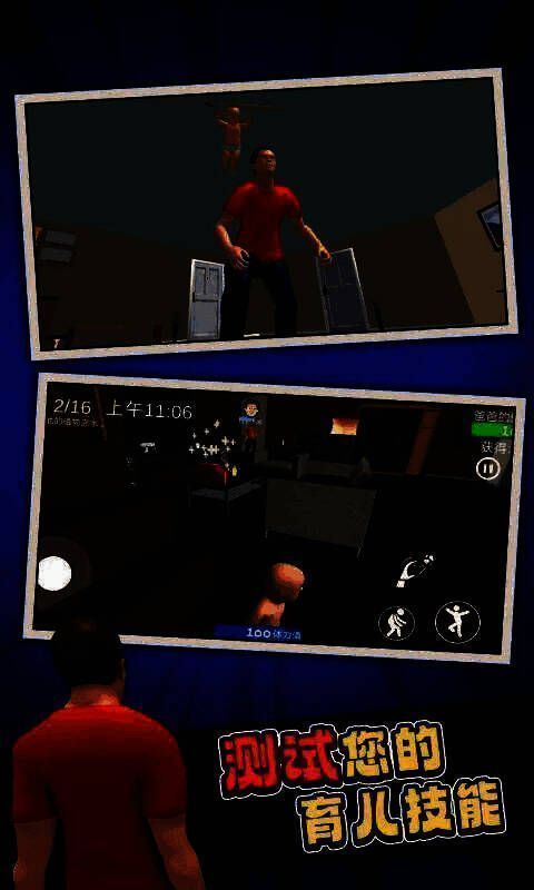 游戏核心玩法围绕“监护”与“破坏”展开,采用双角色切换机制。父亲角色需通过封堵插座、锁闭橱柜、关闭电器、喂药回血等方式防止儿子遭遇危险;而儿子则可尝试吞电池、喝清洁剂、触电、溺水等十余种奇葩方式“挑战极限”。每局游戏均为实时物理演算,角色动作滑稽真实,配合音效与反馈,带来强烈的沉浸感与喜剧效果。值得注意的是,游戏虽题材另类,但所有内容均以卡通化手法呈现,规避真实暴力,强调策略与反应的博弈。