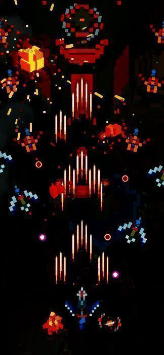 1、【经典像素画风与华丽弹幕】采用复古像素艺术风格,配合绚丽多彩的弹幕设计,打造视觉与操作的双重享受;