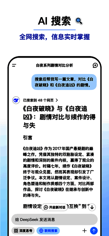 支持完整的网络搜索功能,可以帮助用户实时掌握所需的各类信息,无论是学术知识、生活常识,还是行业趋势,都可以快速获取。