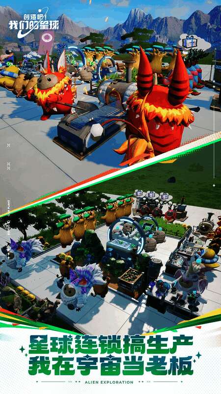 太空开放世界抓宠手游 《创造吧!我们的星球》今日正式上线目的地贝雅星系,即刻启程!《创造吧!我们的星球》今日全平台正式上线,超多福利「啾」极猛送,带数只完全体啾啾和领主坐骑梦幻开局!尤其是开局就送「好大鹅啾」,后续再送「英雄龙啾」,看似“吉祥物”的它们,可是拥有着很强的开荒能力,让游戏减负从起跑线就开始,真正为玩家降肝减氪。作为由英雄互娱研发,腾讯游戏发行的太空开放世界抓宠手游,《创造吧!我们的星球》是《创造与魔法》创作团队历时数年精心打造的全新力作。