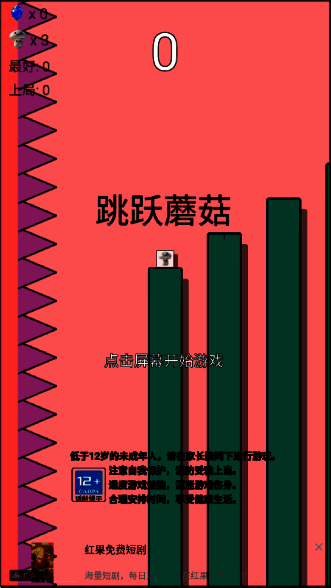 《跳跃蘑菇》是一款极简风格的休闲平台跳跃游戏。玩家只需轻点屏幕,就能操控蘑菇跳上不断生成的平台,每完成一次跳跃即可获得积分。若未能及时跳跃或踩空平台,游戏将立即结束,极大考验玩家的反应与判断力。采用无尽模式设计,平台持续从右上角生成,带来无限挑战乐趣。