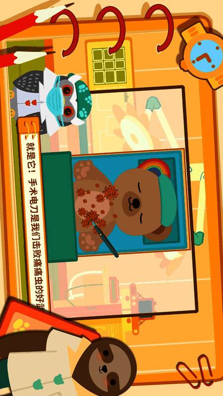 游戏内嵌基础医学知识模块,涵盖体温测量、伤口处理、药物分类等实用护理技能,均以拟人化病症(如“发烧的小兔”“咳嗽的小狗”)呈现,降低理解门槛。数据显示,超82%的测试家庭反馈孩子在游戏后对复诊抵触情绪显著下降,DAU中6-10岁用户占比达74%,展现出优秀的教育干预潜力。