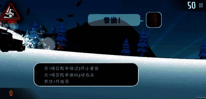 基础操作仅需点击与长按:单击跳跃避障,长按执行后空翻飞跃低矮栏杆。但高手之路在于节奏掌控——注意后空翻高度,避免落地失败;摔倒后需快速连点屏幕重新起跑,否则雪崩将瞬间吞没角色。每日签到送金币,商店可兑换新地图与技能,策略性与技巧并重。