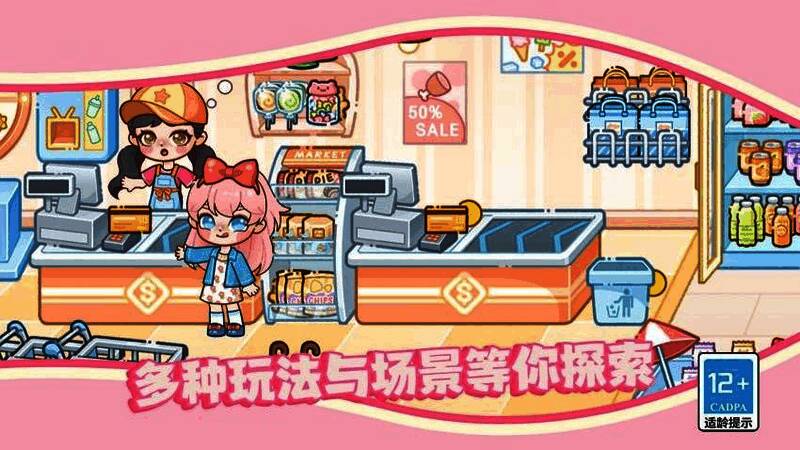 新手入门建议优先完成基础教学任务:进入商店场景后,留意店员头顶气泡中的图标提示(如香肠标志),据此定位货架区域;前往肉类专区,点击箭头指示的包装香肠完成采集;最后送至收银台结算,系统将提示【恭喜获得1金币~】,该货币可用于购买初始服装或装饰品。此流程不仅帮助熟悉操作逻辑,也为后续高阶玩法积累启动资金。